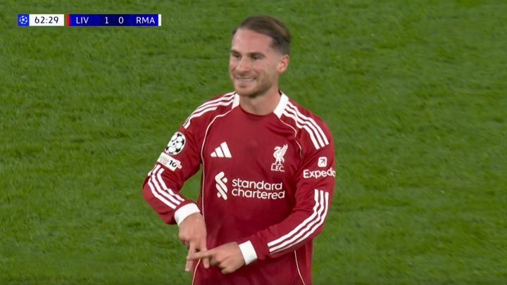虾仁猪心麦卡进球确认有效后,模仿阿诺德庆祝并冲场边送飞吻