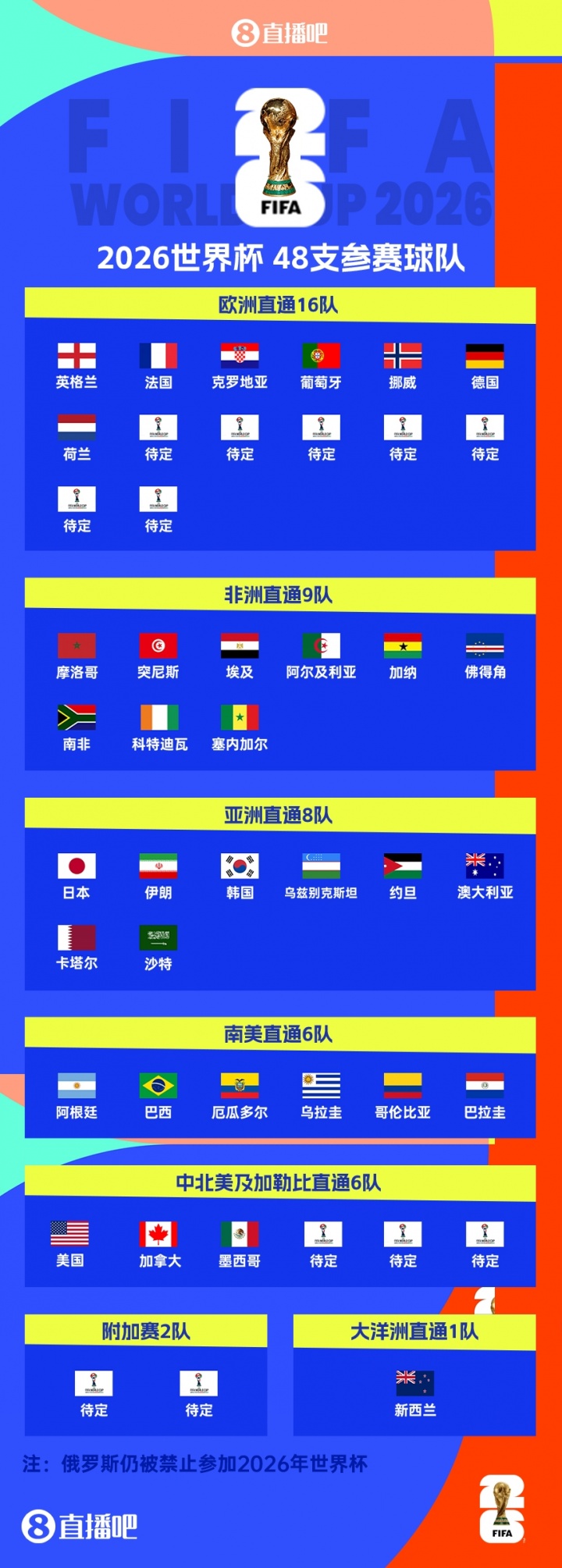11月18日讯 世欧预小组赛结束多场对阵,德国、荷兰均取得大胜,两队成功晋级美加墨世界杯正赛。至此,2026世界杯直通名额已经确定34席,还剩14席。
