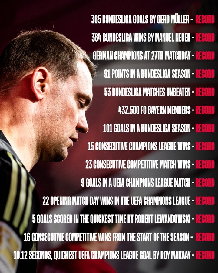 11月21日讯 拜仁官方更新社媒动态,晒出本队创造的各项纪录。