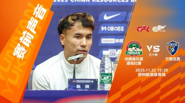 北京时间2025年11月22日15点30分,郑州航海体育场,云南玉昆将与河南俱乐部酒祖杜康进行中超联赛第三十轮比赛。