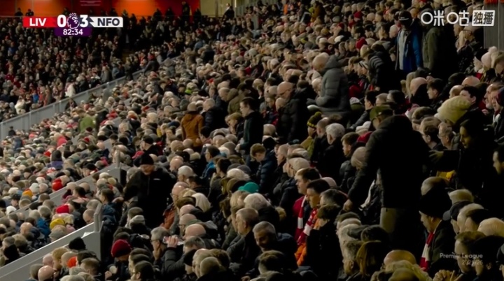安菲尔德之痛!3球落后无力回天,红军球迷80分钟后纷纷开始离场