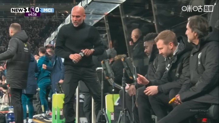 英超第12轮,曼城1-2客负纽卡斯尔联,下半场纽卡率先打破僵局,瓜迪奥拉暴怒狂砸替补席座椅,气得满脸通红。