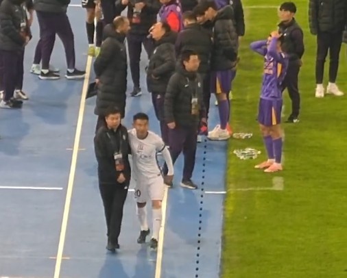 11月23日讯 在昨天下午结束的中超联赛最后一轮中,上海申花客场3-1战胜天津津门虎。比赛结束后,现场球迷拍摄到于汉超与于根伟互相致意的一幕。
