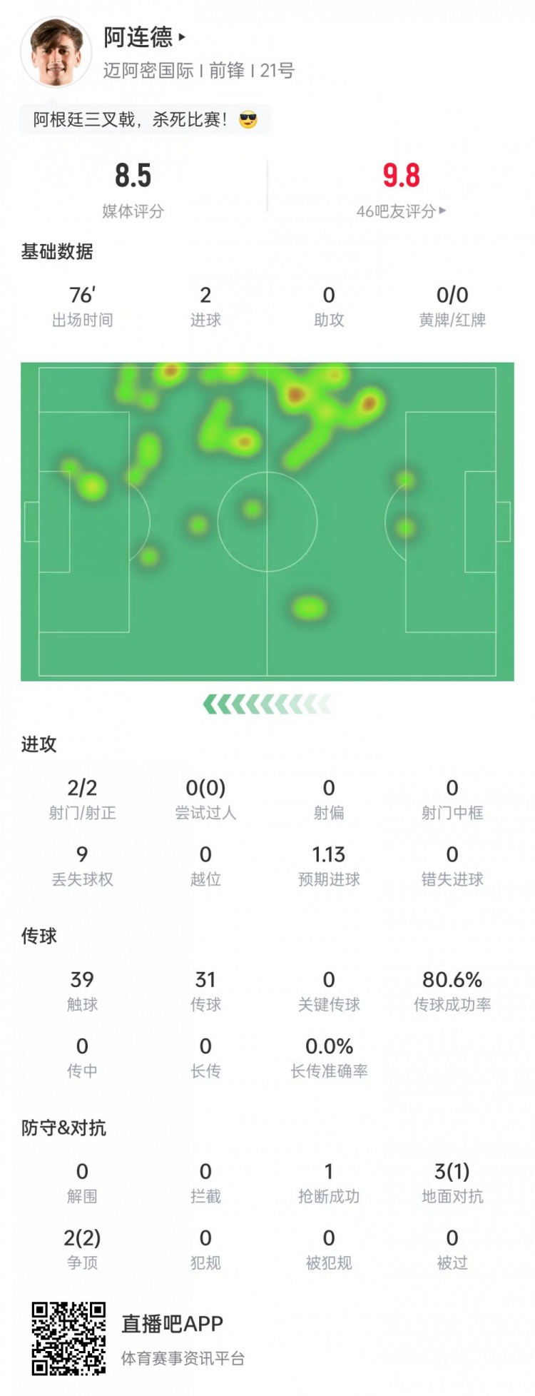 阿连德本场比赛数据: