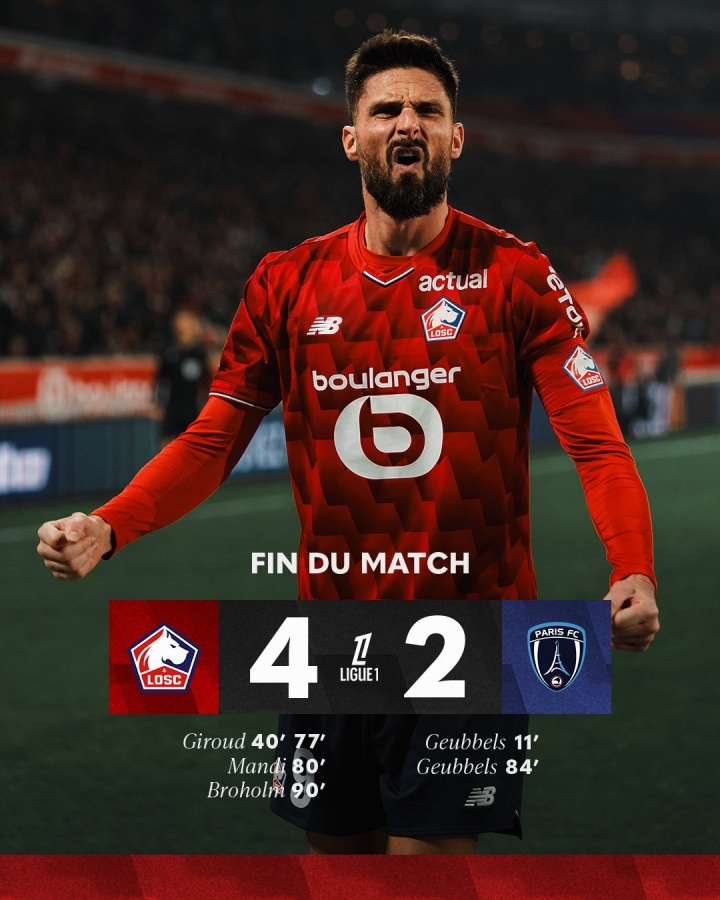 11月24日讯 法甲第13轮,里尔主场4-2逆转巴黎FC,39岁的里尔中锋吉鲁本场比赛梅开二度,终结各项赛事9场进球荒。据OPTA统计,吉鲁也成为1947/1948赛季以来,法甲梅开二度年龄最大的球员。
