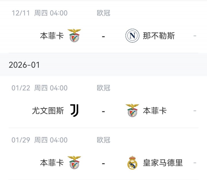 在最后的3轮比赛中,本菲卡的对手依然很强大,他们要先后对那不勒斯、尤文图斯和皇马,出现难度飙升。
