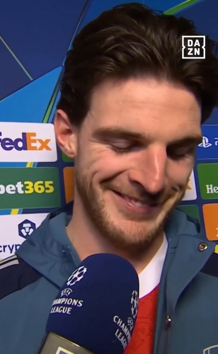 11月28日讯 在欧冠战胜拜仁赛后,阿森纳中场赖斯接受DAZN采访时戏称,如果没主罚好定位球,队友会将气撒在他和萨卡的头上。