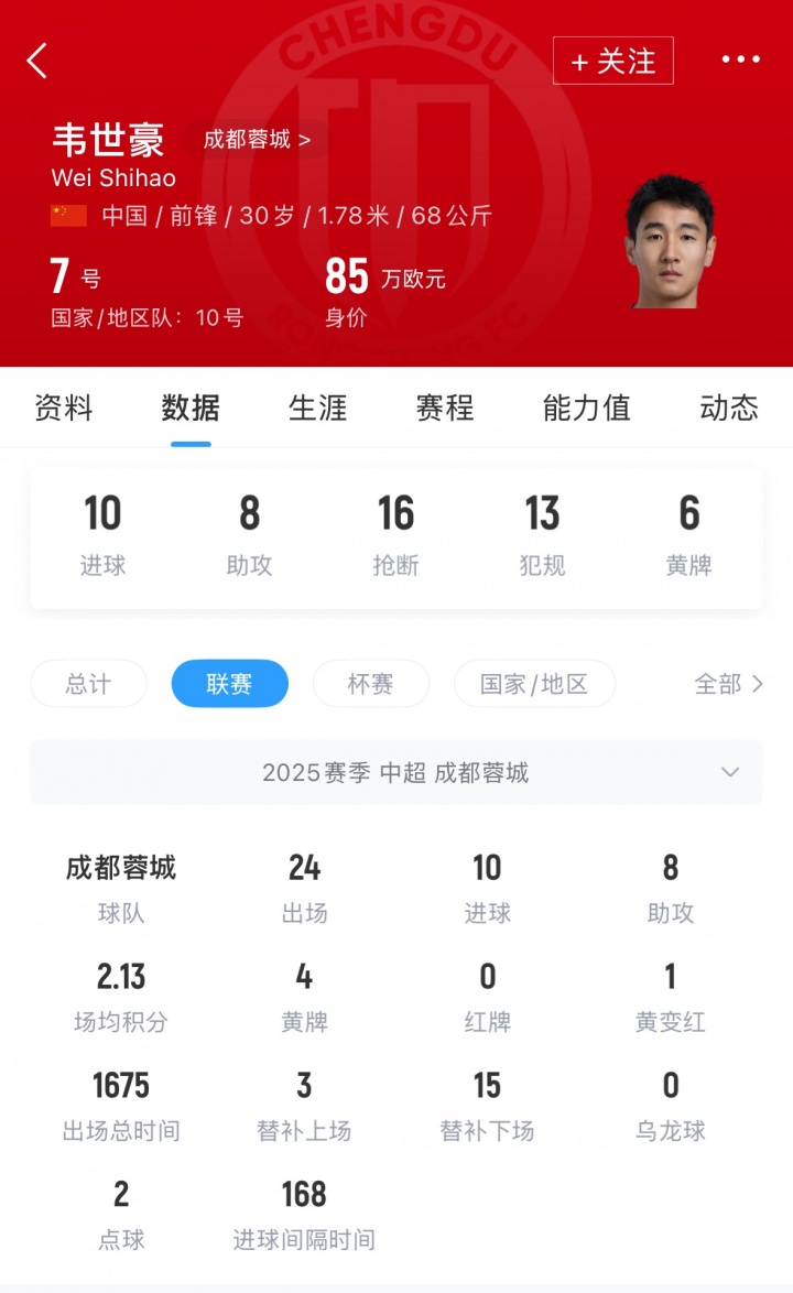徐正源2021赛季开始执教成都队至今,率队完成冲超、队史首进亚冠精英联赛等一系列成就。韦世豪本赛季代表蓉城中超出场24次,打进10球并送出8次助攻。