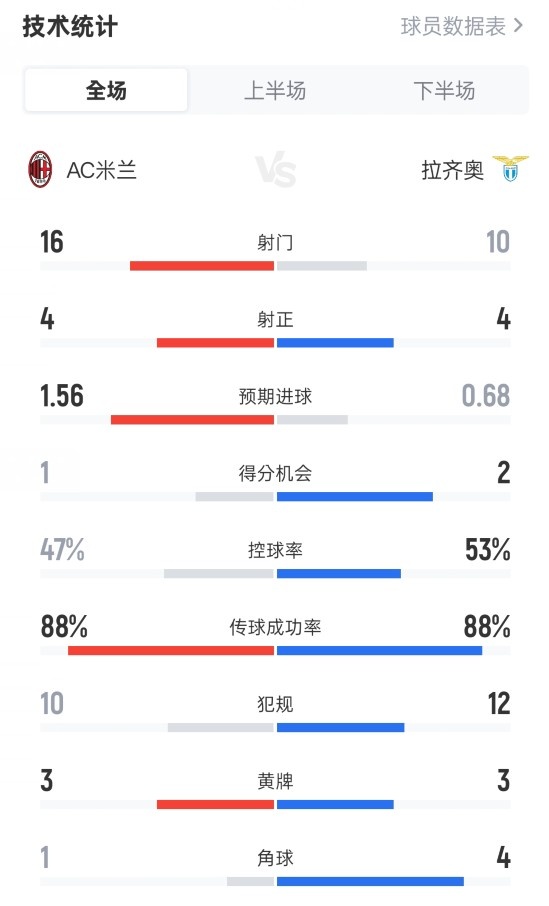11月30日讯 2025-26赛季意甲联赛第13轮,AC米兰1-0战胜拉齐奥。