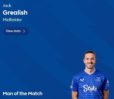 打进制胜球!格拉利什当选埃弗顿1-0伯恩茅斯一役全场最佳
