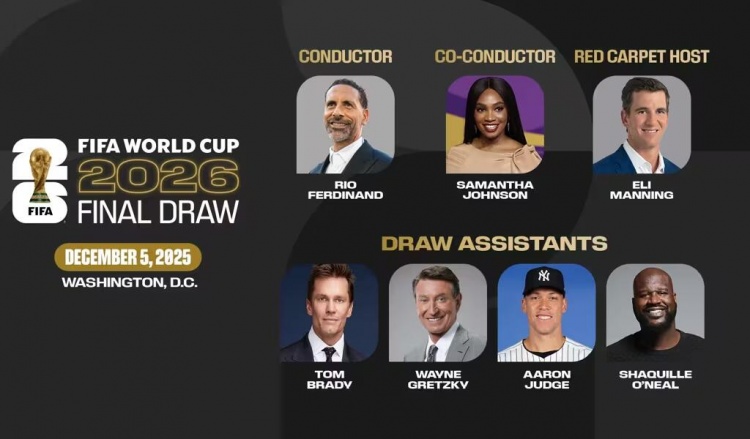 2026年世界杯抽签仪式将于2025年12月5日在华盛顿特区约翰·F·肯尼迪表演艺术中心举行。