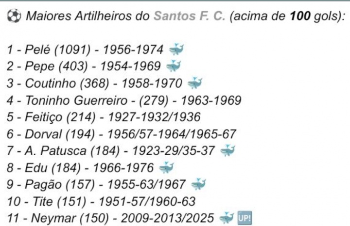 12月4日讯 巴甲第37轮,桑托斯客战尤文图德,带伤上阵的内马尔下半场17分钟上演帽子戏法,帮助桑托斯3-0取胜。据官方统计,内马尔攻入150粒进球,位居桑托斯队史射手榜第11位。