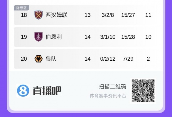 本赛季英超,狼队14轮未尝胜绩,2平12负仅得2分,五大联赛“独一档”,意甲(维罗纳)和德甲(美因茨)的垫底球队都有6分,西甲(皇家奥维耶多)和法甲(欧塞尔)的垫底队拿到了9分。