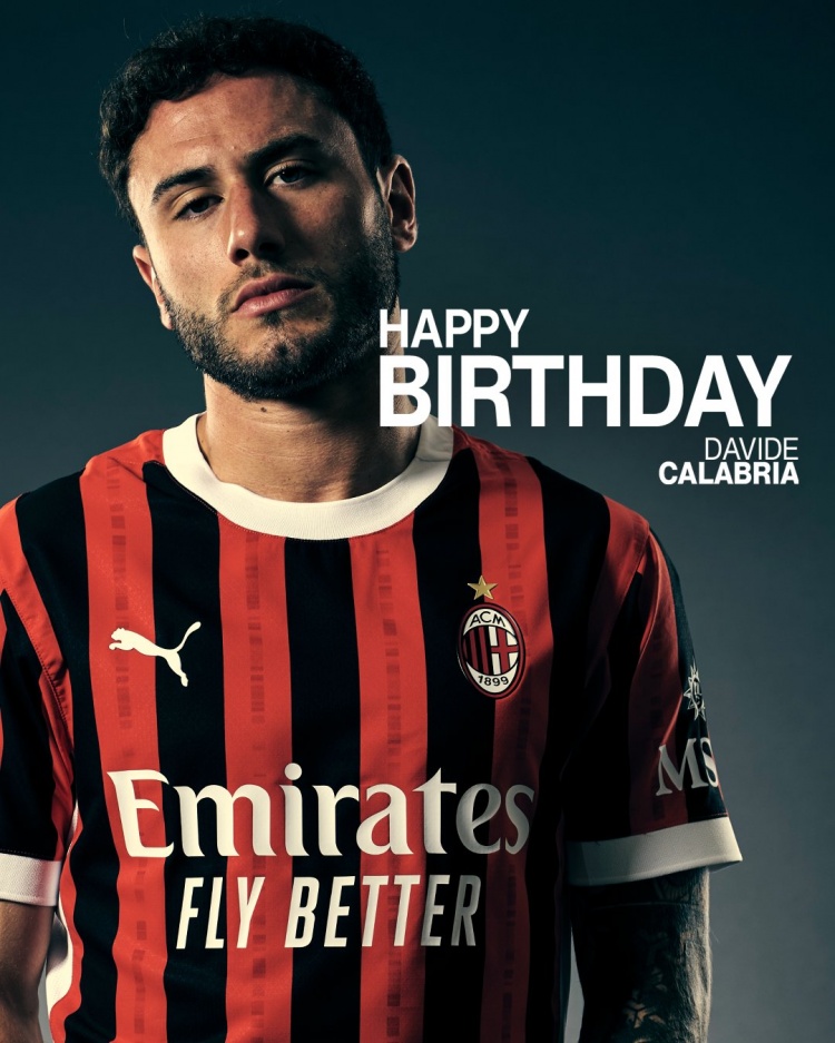 12月6日讯 今天是意大利边卫卡拉布里亚的29岁生日,老东家米兰为他送上祝福。