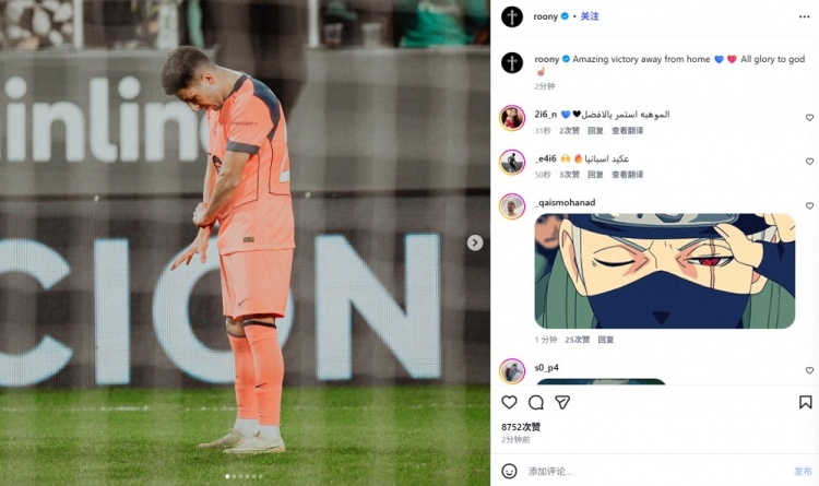 他也在赛后通过社媒晒出自己模仿《火影忍者》佐助的庆祝动作,并配文:“客场取得精彩胜利