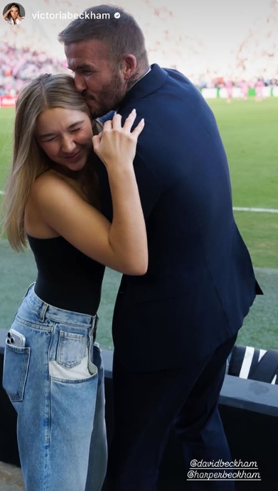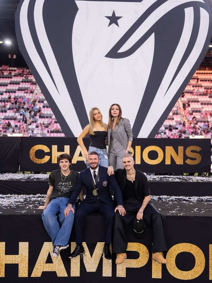 在夺冠现场,迈阿密国际老板贝克汉姆与家人一起庆祝夺冠,在维多利亚晒出的图中,贝克汉姆亲吻小七。