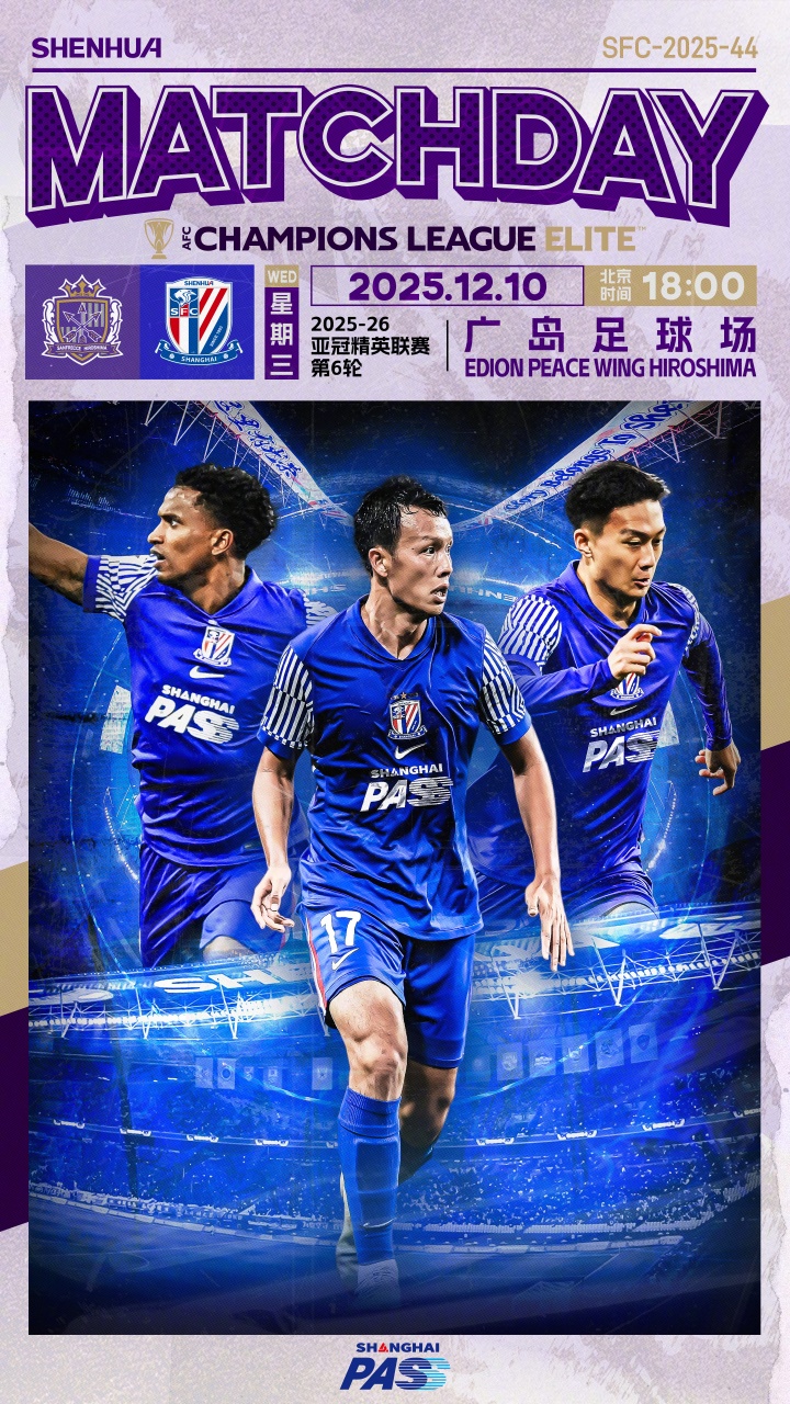 目前亚冠精英联赛东亚区积分榜上,上海申花1胜1平3负积4分,位列第11;广岛三箭2胜2平1负积8分,位列第5。
