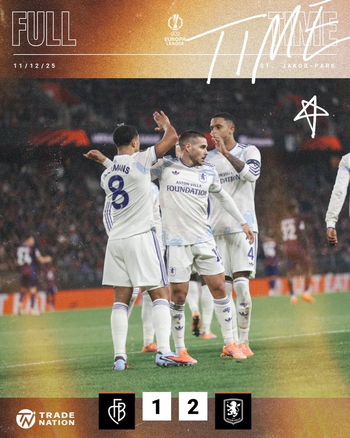 12月12日讯 欧联杯联赛阶段第6轮比赛,维拉客场2-1击败巴塞尔。