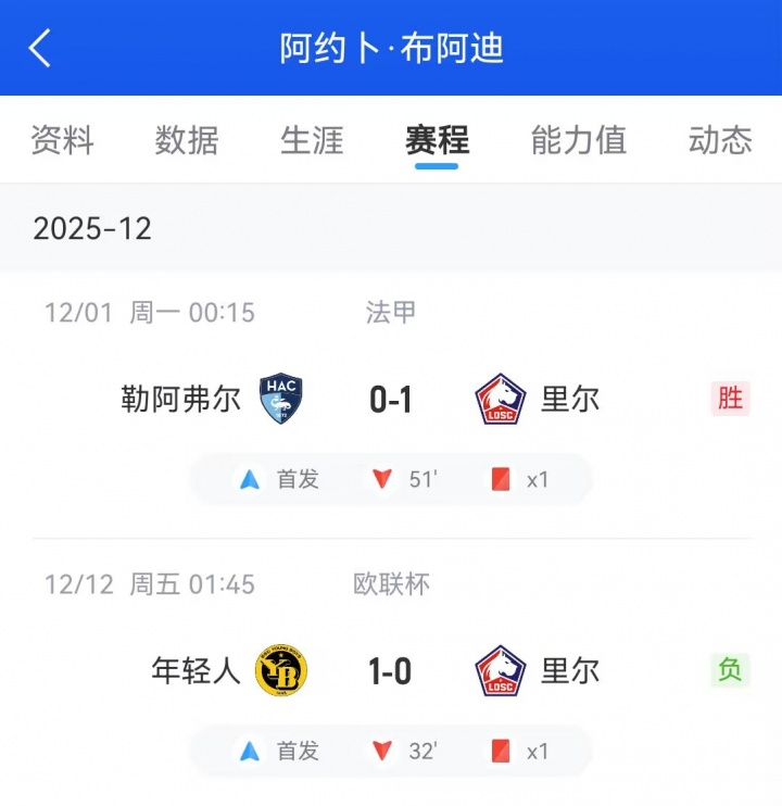 12月12日讯 欧联杯联赛阶段第6轮,里尔0-1客场不敌瑞士超球队年轻人,各项赛事的4连胜就此终结。
