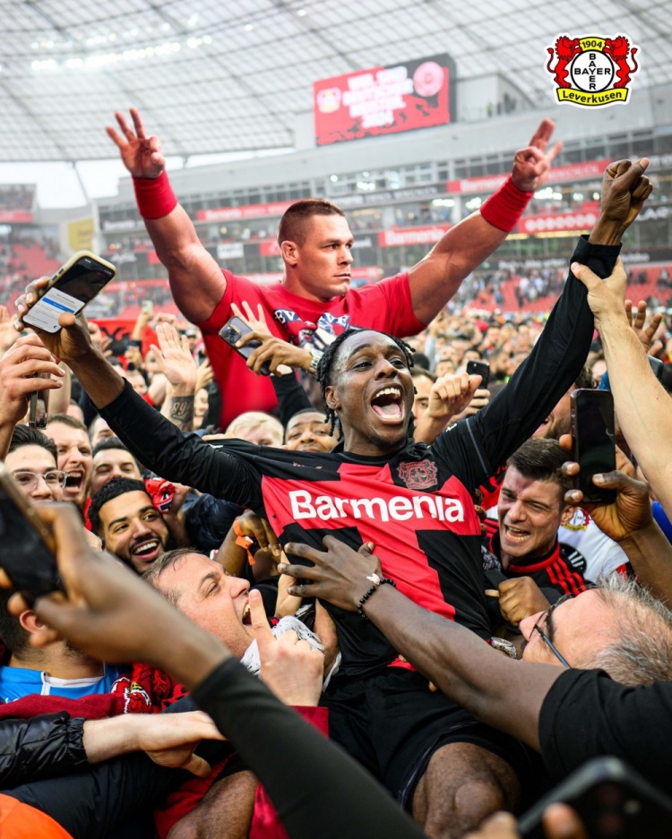 12月14日讯 勒沃库森官方更新社媒动态,致敬WWE巨星约翰·塞纳。