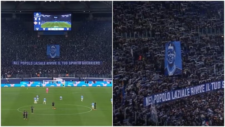 球迷们拉出的横幅写道:“拉齐奥人们的心中,你战士般的灵魂永存。”