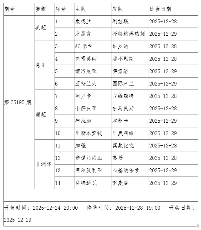 本期竞猜对象同样是圣诞档周末的英超、意甲、葡超和非洲杯赛事。其中英超之中大受非洲杯影响的桑德兰将在主场对决利兹联,热刺德比战中面对水晶宫,意甲米兰双雄将分别对阵维罗纳和亚特兰大。