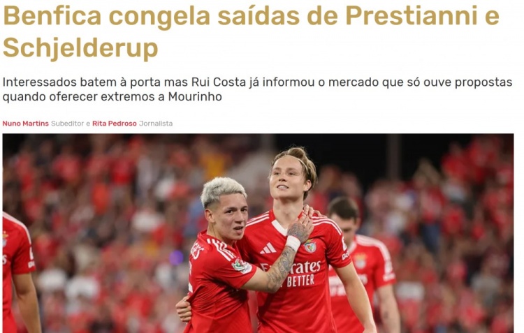 记录报:本菲卡冬窗不放普雷斯蒂亚尼和施耶尔德鲁普,除非签新援