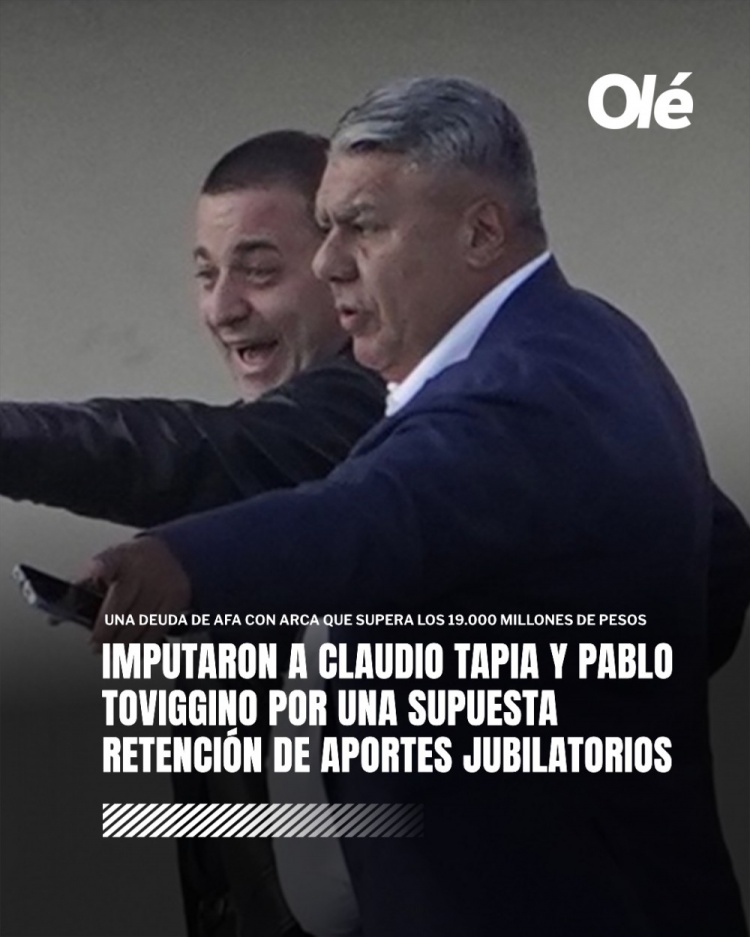 根据检察官罗伯托·纳瓦斯·里亚尔的决定,塔皮亚和托维吉诺被指控涉嫌不当扣留与阿根廷足协相关应缴纳的退休金和社会保障金费用。