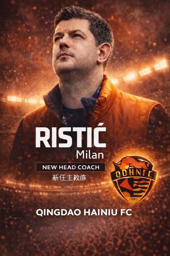 12月27日,中超青岛海牛官方宣布,米兰·里斯蒂奇担任一线队主教练,接替李霄鹏。米兰·里斯蒂奇现年44岁,塞尔维亚教练。他曾两度执教梅州客家俱乐部,首次带队成绩102场48胜17平37负,第二次带队35场比赛战绩为7胜6平22负。