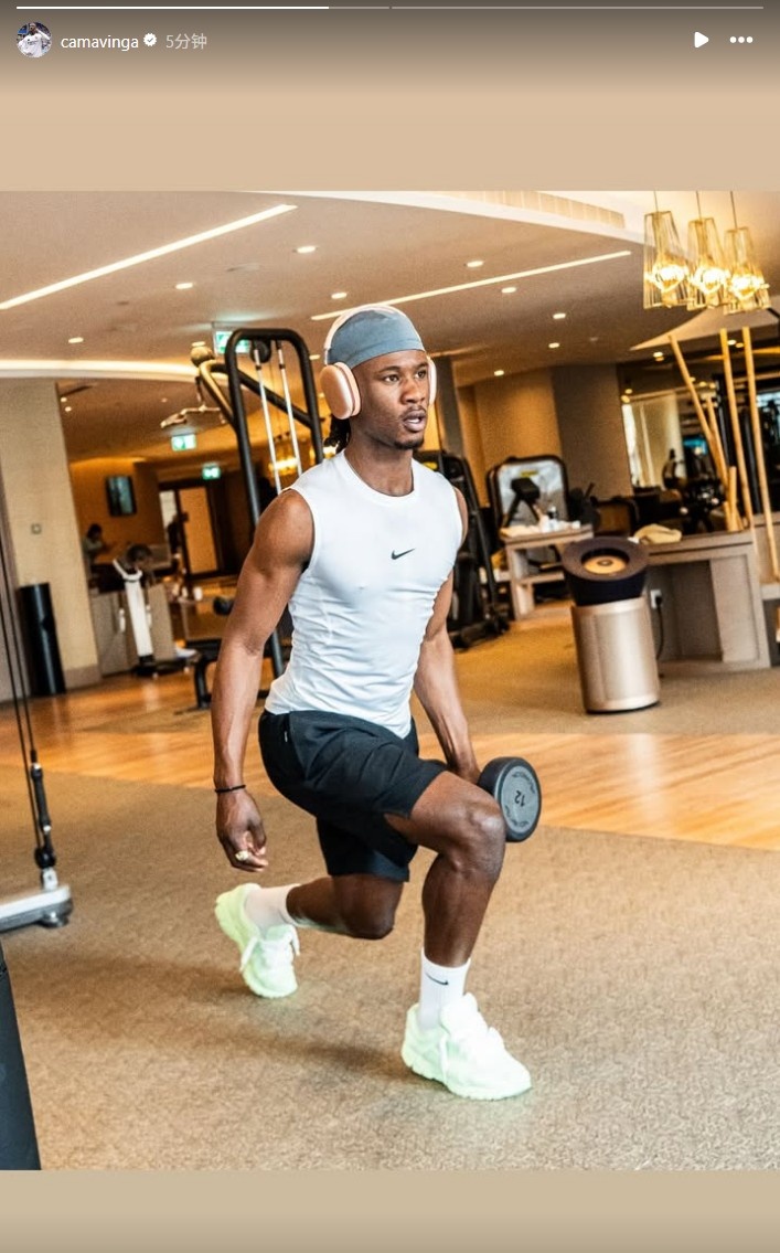 放假也没闲着!卡马文加更新社媒晒训练照,努力保持状态