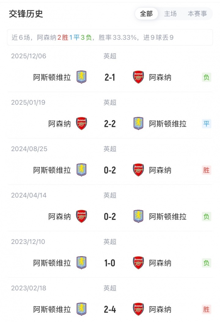 在过往战绩处于劣势的情况下,阿森纳能否击败维拉实现复仇,继续领跑积分榜。还是维拉实现双杀积分追平枪手,各赛事豪取12连胜?让我们拭目以待。