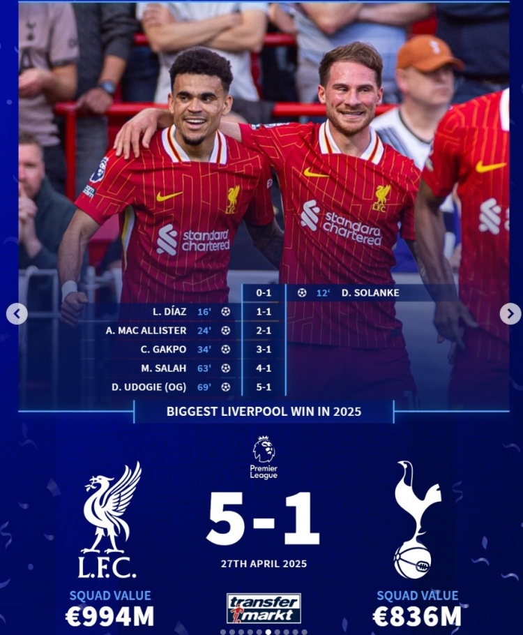 利物浦:英超,5-1热刺