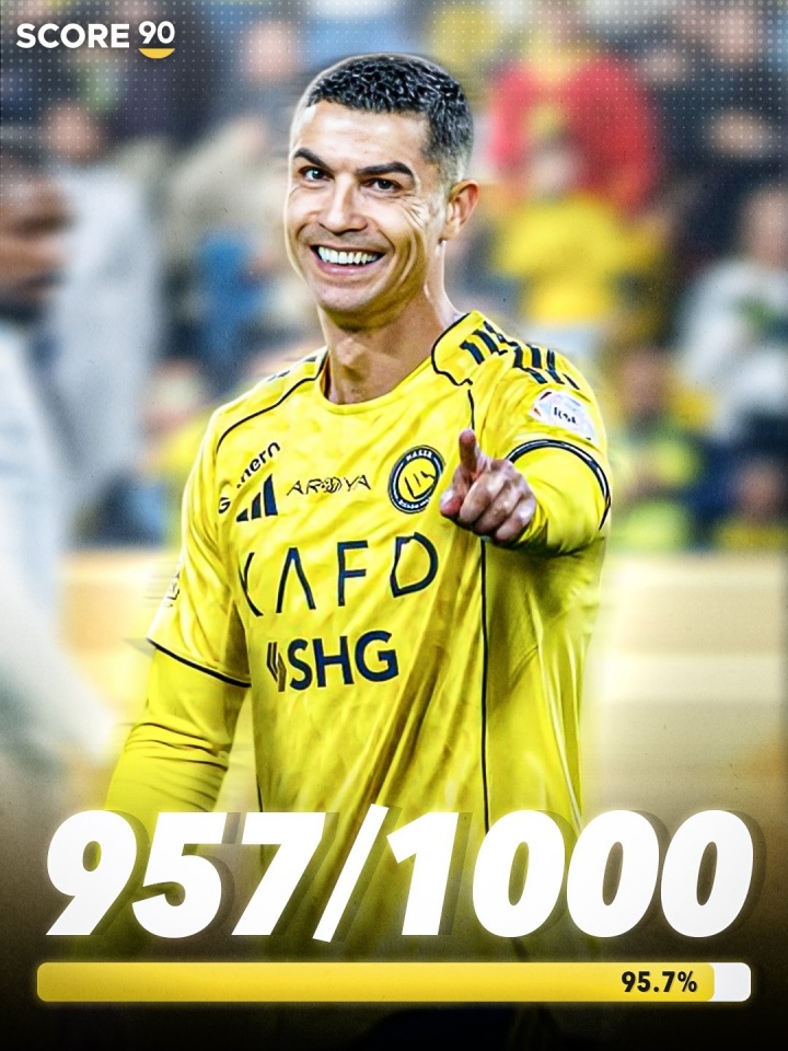 C罗距离他渴望的生涯1000球大关还差43粒进球,如果保持目前的效率,C罗有可能在2026年年底或2027年达到这一里程碑。