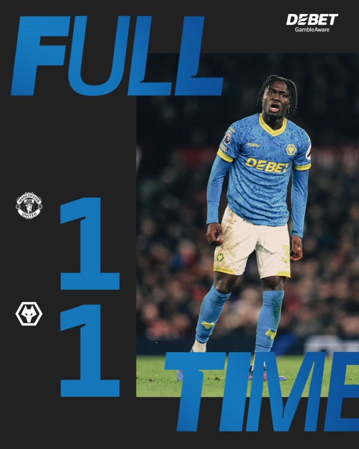 12月31日讯 英超第19轮,狼队1-1战平曼联,拿到1分。