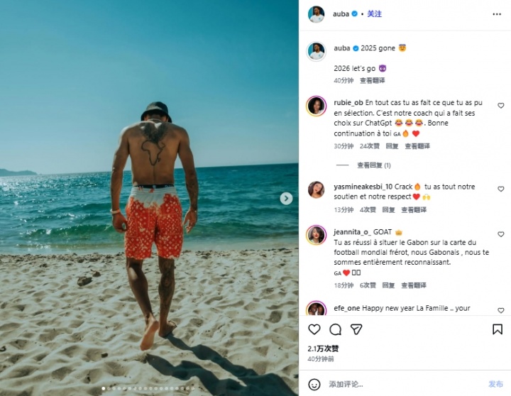 遭国家队开除!奥巴梅杨不受影响晒照:2025过去,2026let’s go