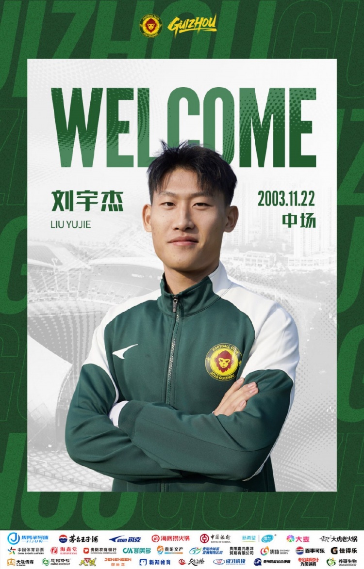2003年11月22日出生于河南商丘,身高178cm,体重70kg,场上司职中场。2025赛季,他以租借身份加盟贵州筑城竞技,成为球队后半程征程中的关键强援。在代表球队登场的15次比赛里,他以13次首发的稳定出勤率,交出3粒进球、1次助攻的数据,为球队的中场注入了强劲动力。球场上的刘宇杰技术细腻,常能凭借精湛的盘带过掉对手,为前场创造杀机,同时他又具备极强的防守意识,不惜余力的奔跑总能及时破坏对手的反击攻势。2026赛季,这位实力悍将正式加盟贵州筑城竞技,他将继续身披37号战袍,为贵州而战!