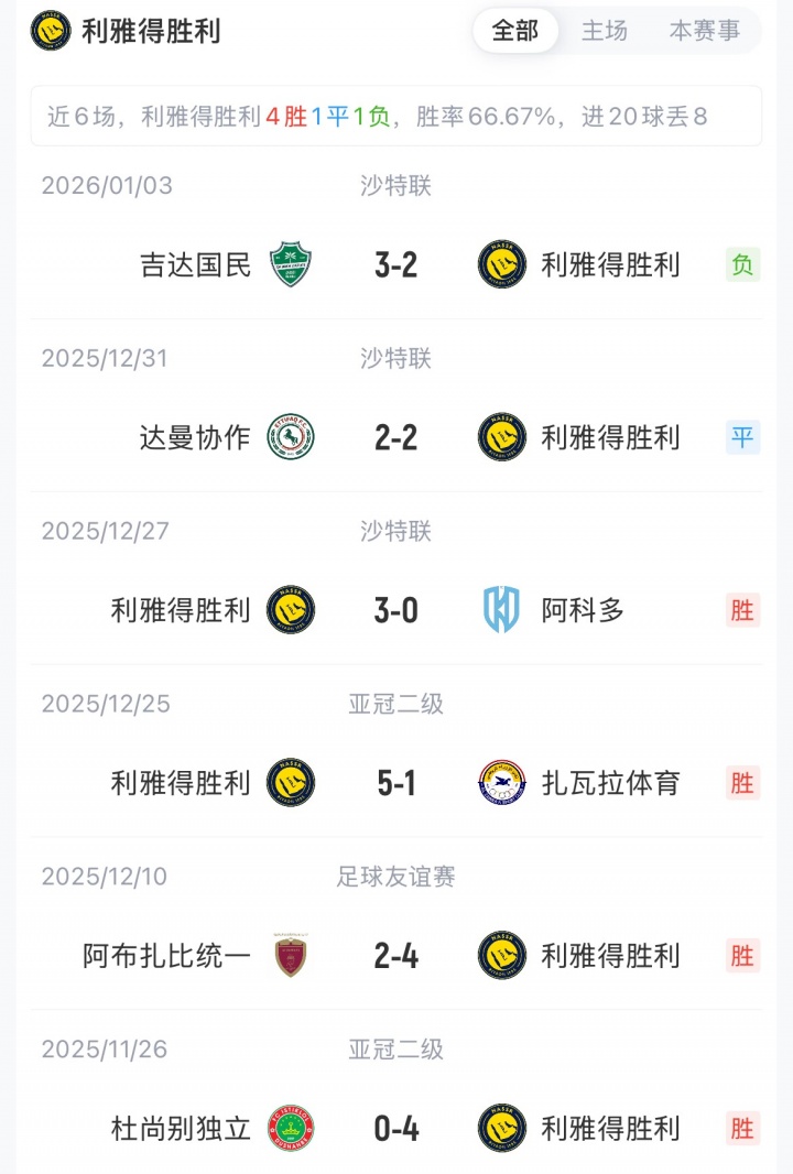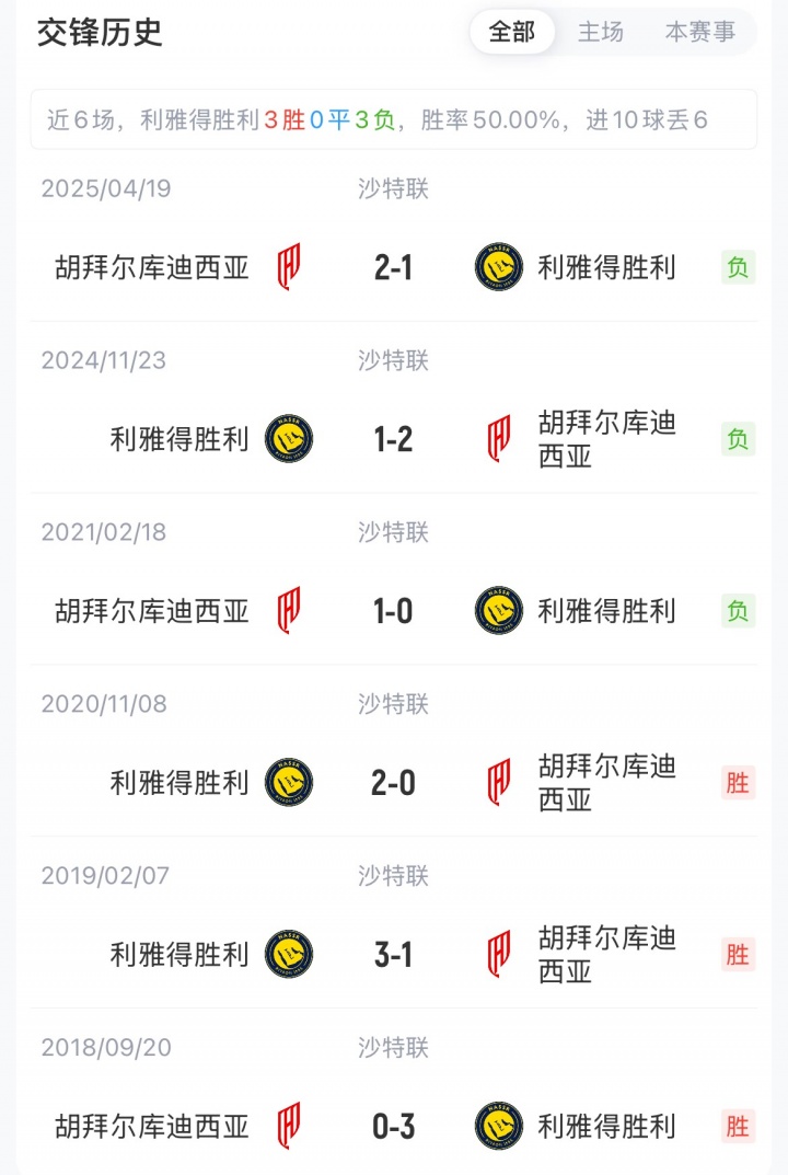 利雅得胜利暂以31分排名第二,胡拜尔库迪西亚暂以24分排名第五。直接接手中,胜利联赛遭遇三连败。