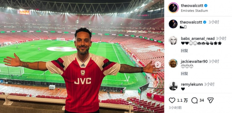 虽然阿森纳未能取得三分,但赛后沃尔科特还是在ins上上传了自己在酋长球场照片。