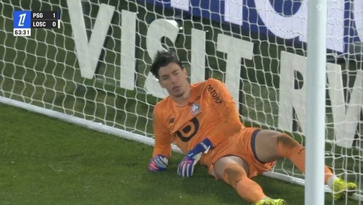 直接懵了!里尔门将遭登贝莱神仙吊射,躺球门里思考人生目瞪口呆