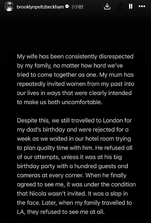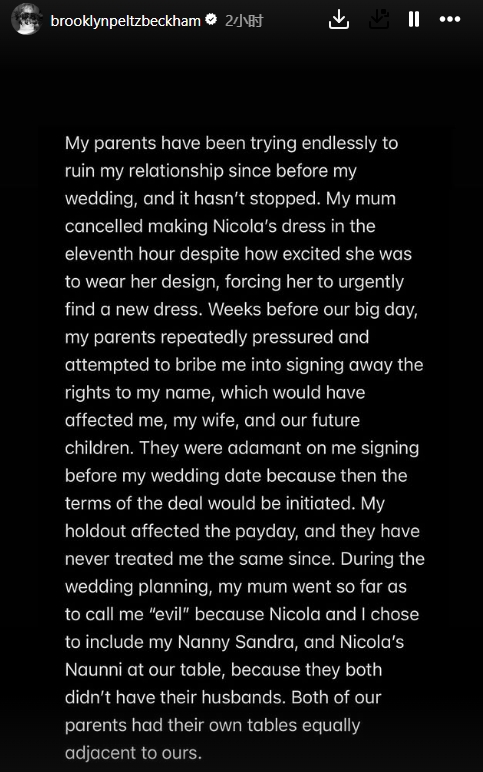 决裂!小贝长子布鲁克林控诉:遭父母无休止攻击 他们只重利益