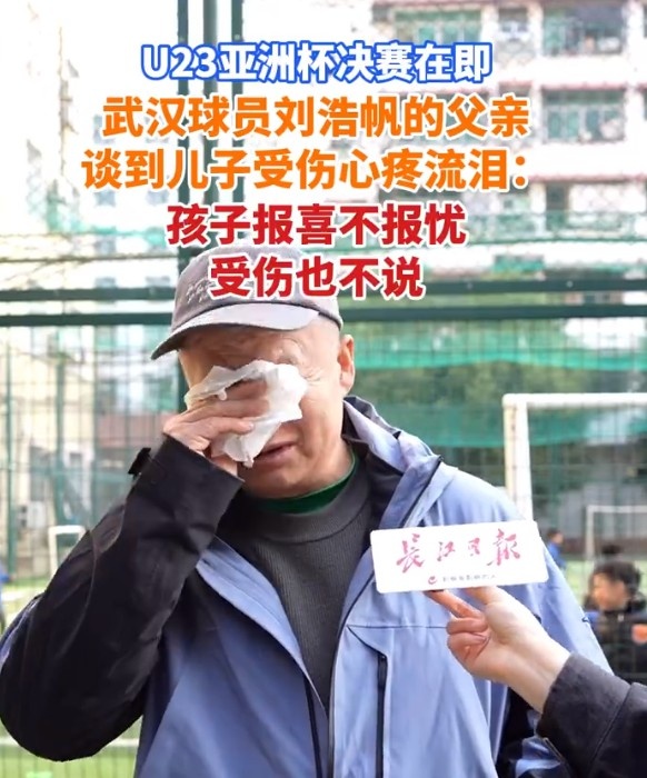 1月24日讯 U23亚洲杯决赛,U23国足将与日本U23队争夺冠军。据《长江日报》报道,刘浩帆的父亲谈到儿子受伤心疼流泪。