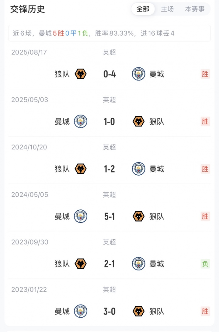 英超22轮比赛过后,曼城13胜4平5负积43分排在第二,球队近4场英超3平1负;狼队22轮1胜5平16负积8分排在第20。