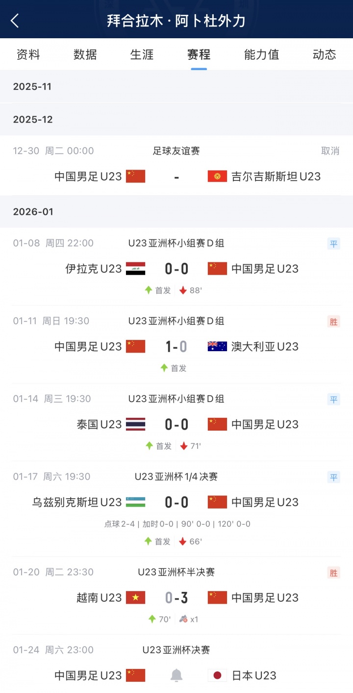 北京时间今晚23点,U23亚洲杯决赛,中国男足U23vs日本U23,本场比赛首发出炉,拜合拉木替补待命。获悉,拜合拉木昨日因身体不适缺席训练。