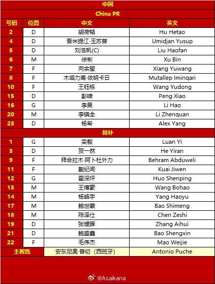 U23国足决赛对阵日本首发: