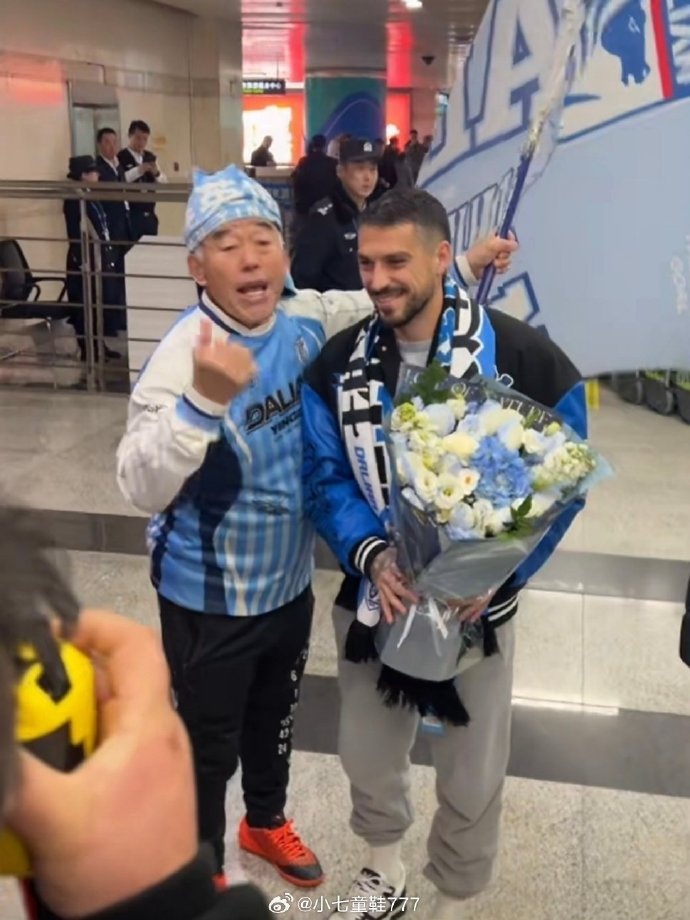 1月25日讯 据博主小七童鞋777报道,前武汉三镇外援斯坦丘已经抵达大连,并且在机场为球迷签名。