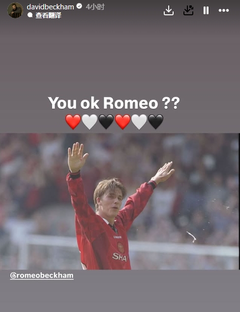 虽然贝克汉姆是曼联名宿,但他的二儿子罗密欧则是阿森纳球迷。赛后,贝克汉姆晒出自己曼联球员时期的庆祝照@罗密欧:“你还好吗??”