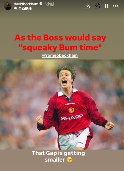 贝克汉姆再次发文:“正如老大(弗格森)会说的‘紧张刺激时刻来了’,差距在缩小。”