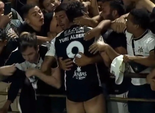 尴尬又无奈!科林蒂安球员打进绝杀球激情庆祝,球裤被球迷扯掉