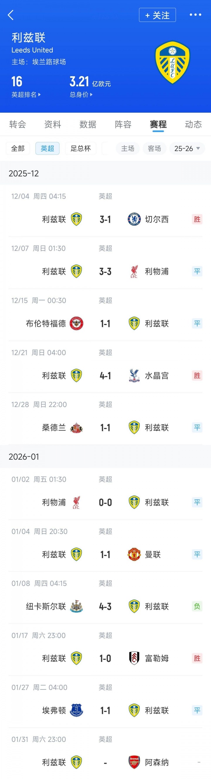 01月27日讯 英超第23轮,利兹联1-1战平埃弗顿,球队近10轮仅输1场拿了15分。