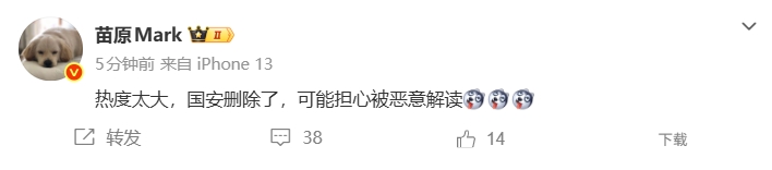 媒体人苗原表示:热度太大,国安删除了,可能担心被恶意解读。